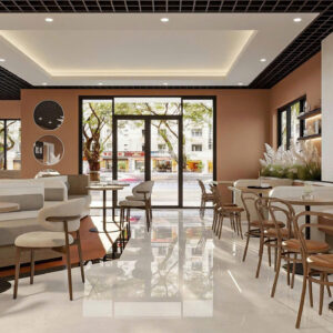 - Phong cách: hiện đại đánh dấu sự mở rộng trong dịch vụ thiết kế không chỉ nhà ở mà còn F&B – mô hình kinh doanh dịch vụ.