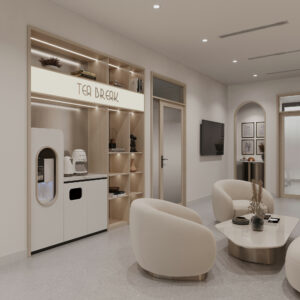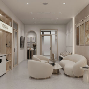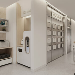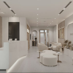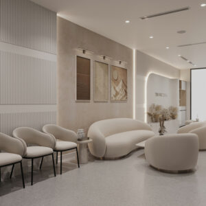 • Khu chờ tối giản, thân thiện với khách hàng • Phòng điều trị, phòng họp, bếp nhân viên… đều được đồng bộ từ nội thất đến hệ thống bảng hiệu