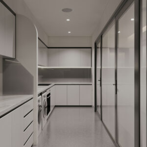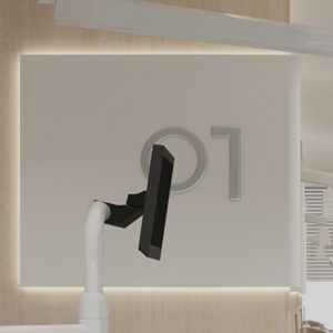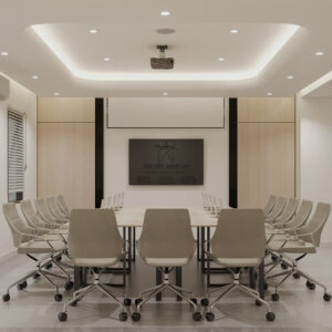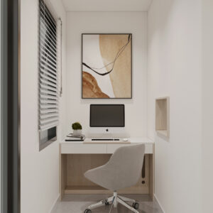 • Quầy lễ tân tone trắng – be hiện đại, nhẹ nhàng và chuyên nghiệp
