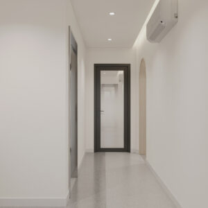 • Cửa vòm gỗ uốn cong mềm mại, tạo điểm nhấn riêng biệt